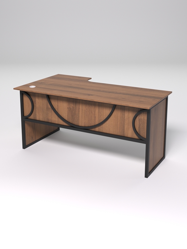 Стол состоит из 4х деталей, которые скрепляются между собой конфирматами и мебельными уголками. Столешница имеет фигурный вырез со стороны работника. Инструкция по сборке не требуется.