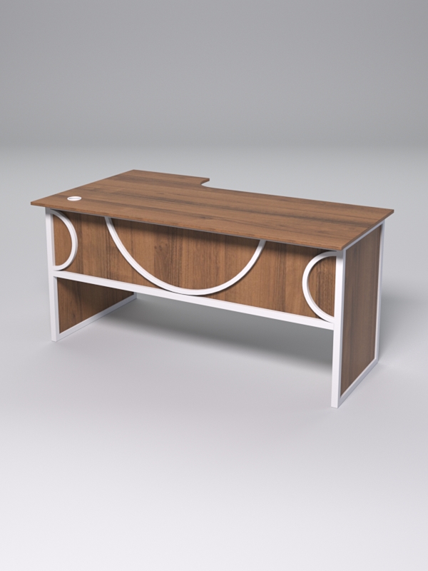 Стол состоит из 4х деталей, которые скрепляются между собой конфирматами и мебельными уголками. Столешница имеет фигурный вырез со стороны работника. Инструкция по сборке не требуется.