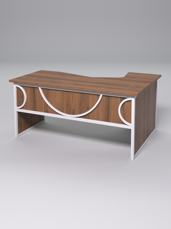 Стол левосторонний. Отличный вариант для работы в офисе. Имеет практичную угловую конструкцию и поможет рационально организовать пространство. Отличный вариант для кабинета руководителя. Также подойдет в приемную и переговорную комнату. Изделие удобное для работы за компьютером. Помимо этого большая рабочая поверхность будет необходима в том случае, если работа предполагает контакты с посетителями или введение переговоров— сразу два человека могут сесть за стол с внешней стороны. Под столом имеется пространство, где можно поставить тумбочку или системный блок для компьютера. А благодаря своему стильному внешнему виду станет важной частью имиджа компании.