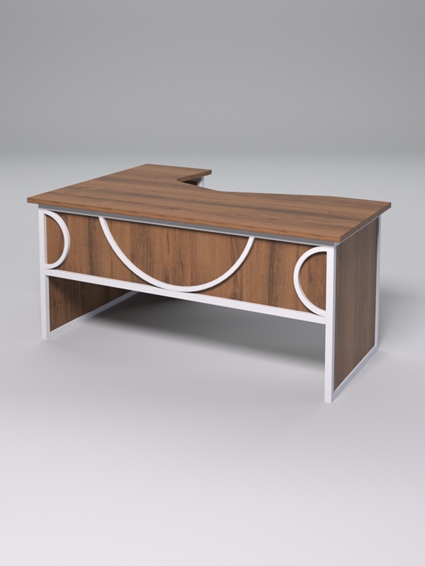 Стол правосторонний. Отличный вариант для работы в офисе. Имеет практичную угловую конструкцию и поможет рационально организовать пространство. Отличный вариант для кабинета руководителя. Также подойдет в приемную и переговорную комнату. Изделие удобное для работы за компьютером. Помимо этого большая рабочая поверхность будет необходима в том случае, если работа предполагает контакты с посетителями или введение переговоров— сразу два человека могут сесть за стол с внешней стороны. Под столом имеется пространство, где можно поставить тумбочку или системный блок для компьютера. А благодаря своему стильному внешнему виду станет важной частью имиджа компании.