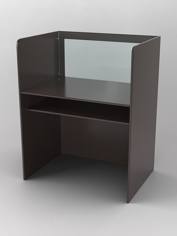 Парта для лингафонного кабинета. Особенностью лингафонной кабинки является шумоизолирующая перегородка, которая помогает при изучении иностранных языков в различных учебных заведениях. Под столешницей имеется полка, где можно хранить наушники или иную технику для обучения. Материал — столешница, полка, левая и правая перегородка выполнены из лдсп, передняя часть стеклянная. Переднюю часть можно выполнить из оргстекла, но итоговая стоимость будет больше, поэтому цену уточняйте у менеджера.