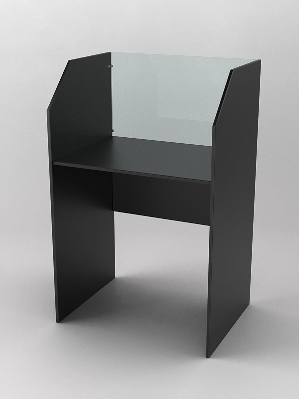 Парта для лингафонного кабинета. Особенностью лингафонной кабинки является шумоизолирующая перегородка, которая помогает при изучении иностранных языков в различных учебных заведениях. Материал — столешница, полка, левая и правая перегородка выполнены из лдсп, передняя часть стеклянная. Переднюю часть можно выполнить из оргстекла, но итоговая стоимость будет больше, поэтому цену уточняйте у менеджера.