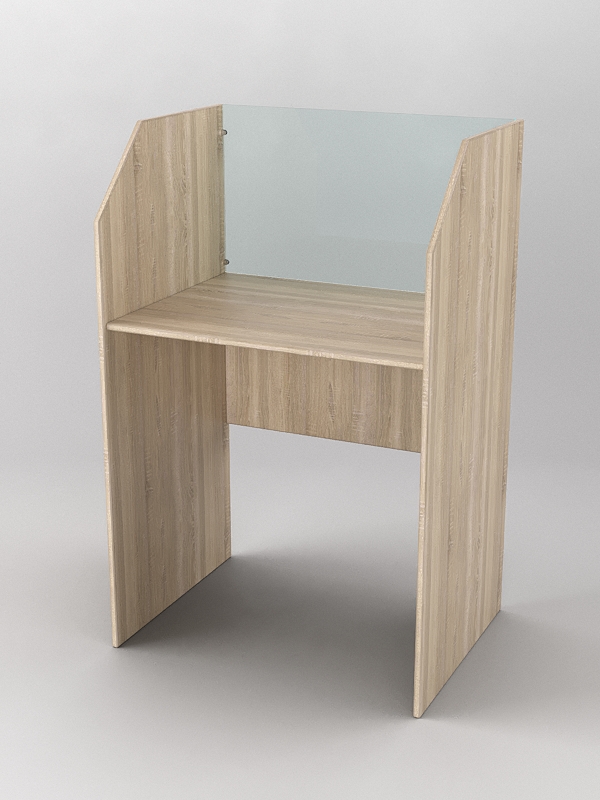 Парта для лингафонного кабинета. Особенностью лингафонной кабинки является шумоизолирующая перегородка, которая помогает при изучении иностранных языков в различных учебных заведениях. Материал — столешница, полка, левая и правая перегородка выполнены из лдсп, передняя часть стеклянная. Переднюю часть можно выполнить из оргстекла, но итоговая стоимость будет больше, поэтому цену уточняйте у менеджера.