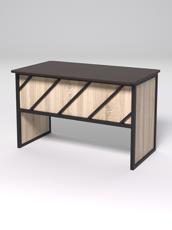 Стол рабочий офисный С-02 (закругленные торцы) "СТРОНГ" в стиле ЛОФТ декор №2, Дуб Венге и Дуб Сонома