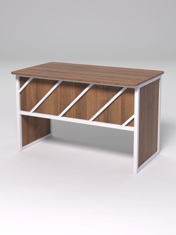 Стол рабочий офисный С-02 (закругленные торцы) "СТРОНГ" в стиле ЛОФТ декор №2, Орех + металлический каркас Белый