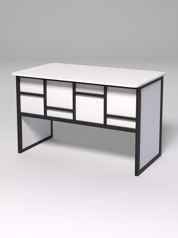 Стол рабочий офисный С-02 (закругленные торцы) СТРОНГ в стиле ЛОФТ декор №3, Белый