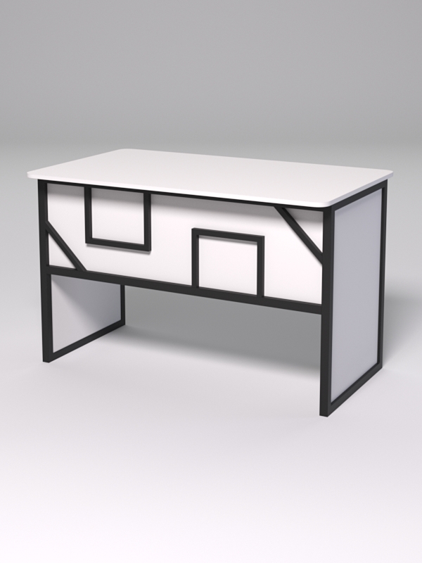 Стол рабочий офисный С-02 (закругленные торцы) "СТРОНГ" в стиле ЛОФТ декор №4, Белый