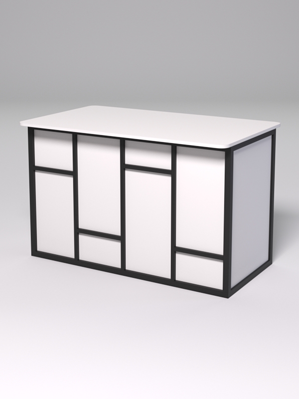 Стол рабочий офисный С-02А (закругленные торцы) "СТРОНГ" в стиле ЛОФТ декор №3, Белый