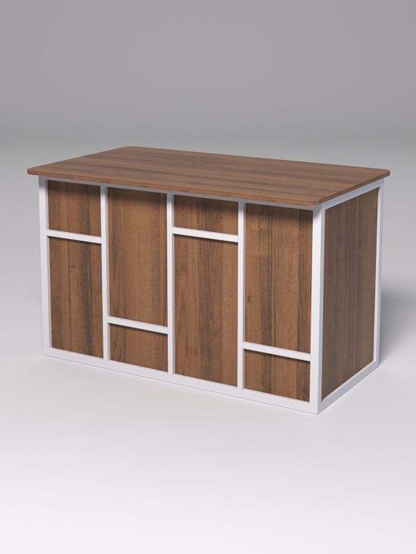 Стол рабочий офисный С-02А (закругленные торцы) "СТРОНГ" в стиле ЛОФТ декор №3, Орех + металлический каркас Белый