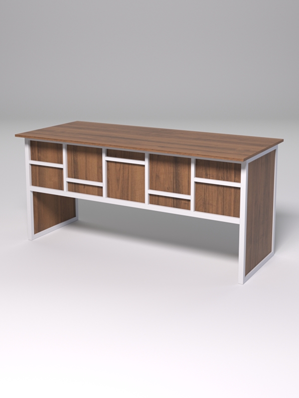 Стол рабочий офисный С-05 "СТРОНГ" в стиле ЛОФТ декор №3, Орех + металлический каркас Белый