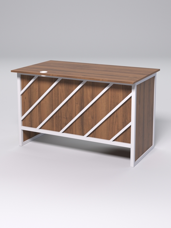 Стол однотумбовый офисный С-06 (левосторонний) "СТРОНГ" в стиле ЛОФТ декор №2, Орех + металлический каркас Белый