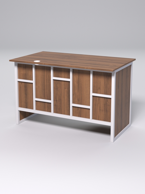 Стол однотумбовый офисный С-06 (левосторонний) "СТРОНГ" в стиле ЛОФТ декор №3, Орех + металлический каркас Белый