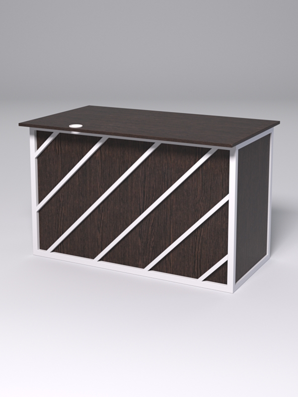 Стол однотумбовый офисный С-06А (левосторонний) "СТРОНГ" в стиле ЛОФТ декор №2, Дуб Венге + металлический каркас Белый