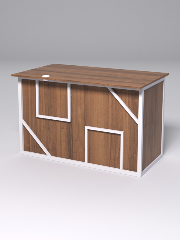 Стол однотумбовый офисный С-06А (левосторонний) "СТРОНГ" в стиле ЛОФТ декор №4, Орех + металлический каркас Белый