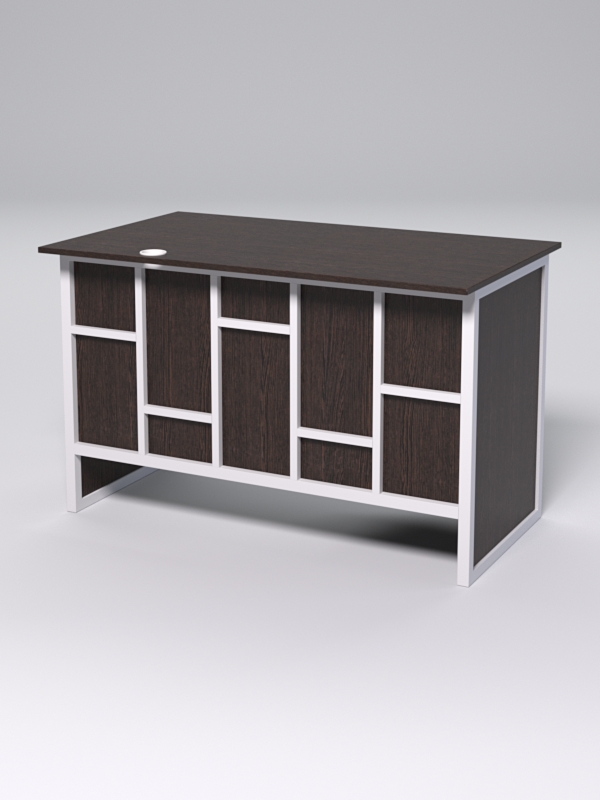 Стол однотумбовый офисный С-06 (правосторонний) "СТРОНГ" в стиле ЛОФТ декор №3, Дуб Венге + металлический каркас Белый