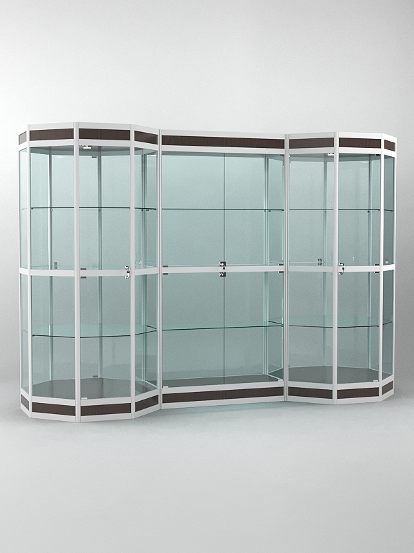 Витрина для кубков и наград. В основной части стенда установлено три стеклянные полки. Комплектуется сверху светодиодной подсветкой. Каркас алюминиевый. Задняя стенка стеклянная.
