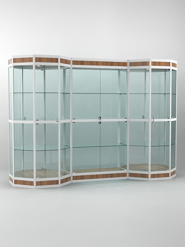 Витрина для кубков и наград. В основной части стенда установлено три стеклянные полки. Комплектуется сверху светодиодной подсветкой. Каркас алюминиевый. Задняя стенка стеклянная.