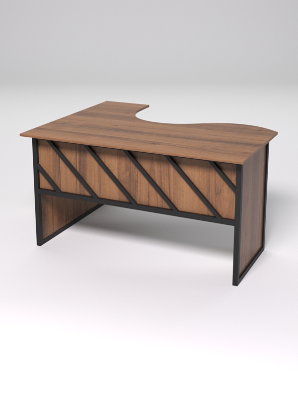 Стол эргономичный офисный СЭ-14 (правосторонний) "СТРОНГ" в стиле ЛОФТ декор №2, Орех