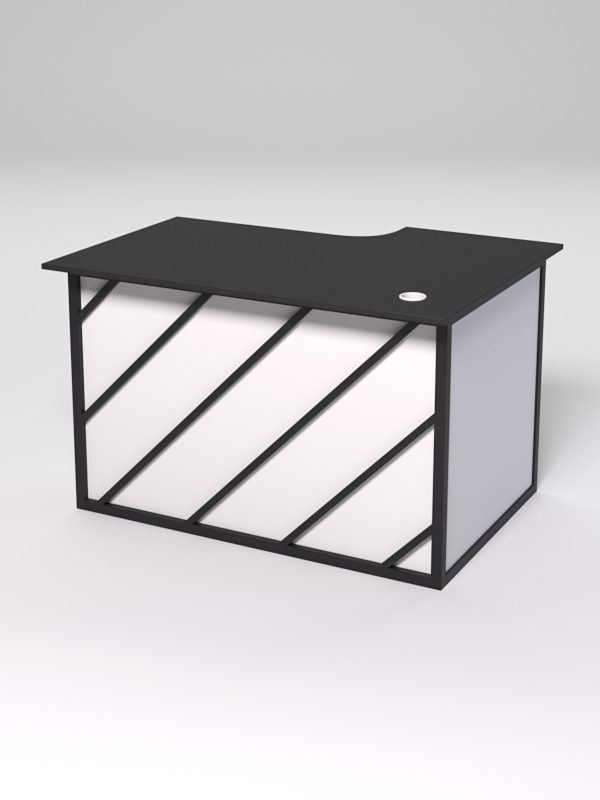 Стол состоит из 4х деталей, которые скрепляются между собой конфирматами и мебельными уголками. Столешница имеет фигурный вырез со стороны работника. Инструкция по сборке не требуется.