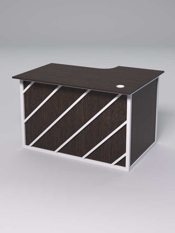 Стол состоит из 4х деталей, которые скрепляются между собой конфирматами и мебельными уголками. Столешница имеет фигурный вырез со стороны работника. Инструкция по сборке не требуется.