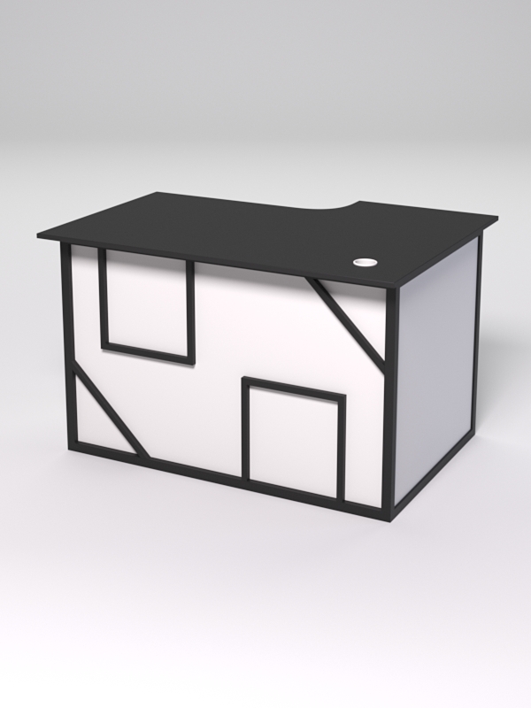 Стол состоит из 4х деталей, которые скрепляются между собой конфирматами и мебельными уголками. Столешница имеет фигурный вырез со стороны работника. Инструкция по сборке не требуется.