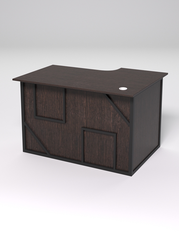 Стол состоит из 4х деталей, которые скрепляются между собой конфирматами и мебельными уголками. Столешница имеет фигурный вырез со стороны работника. Инструкция по сборке не требуется.