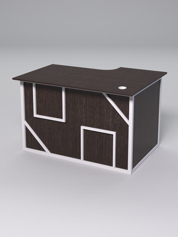 Стол состоит из 4х деталей, которые скрепляются между собой конфирматами и мебельными уголками. Столешница имеет фигурный вырез со стороны работника. Инструкция по сборке не требуется.