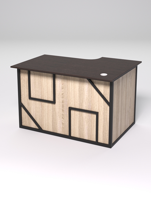 Стол состоит из 4х деталей, которые скрепляются между собой конфирматами и мебельными уголками. Столешница имеет фигурный вырез со стороны работника. Инструкция по сборке не требуется.