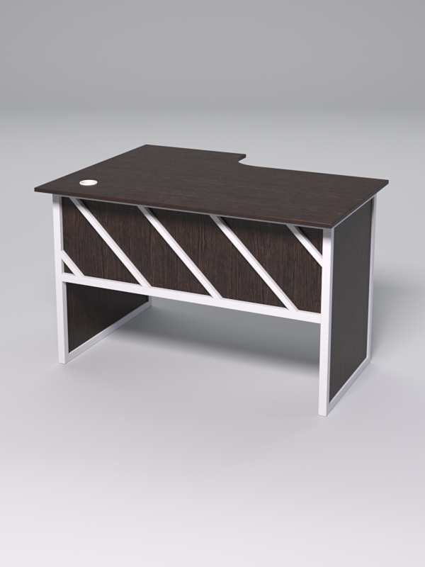 Стол состоит из 4х деталей, которые скрепляются между собой конфирматами и мебельными уголками. Столешница имеет фигурный вырез со стороны работника. Инструкция по сборке не требуется.
