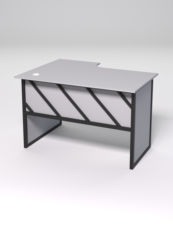 Стол состоит из 4х деталей, которые скрепляются между собой конфирматами и мебельными уголками. Столешница имеет фигурный вырез со стороны работника. Инструкция по сборке не требуется.