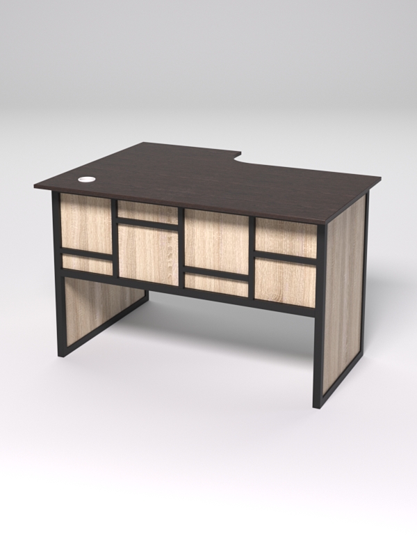 Стол состоит из 4х деталей, которые скрепляются между собой конфирматами и мебельными уголками. Столешница имеет фигурный вырез со стороны работника. Инструкция по сборке не требуется.