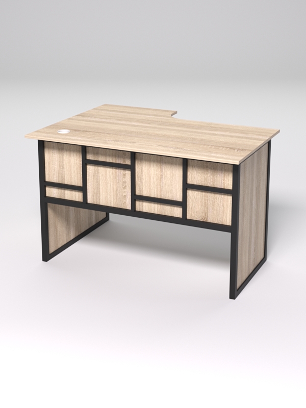 Стол состоит из 4х деталей, которые скрепляются между собой конфирматами и мебельными уголками. Столешница имеет фигурный вырез со стороны работника. Инструкция по сборке не требуется.