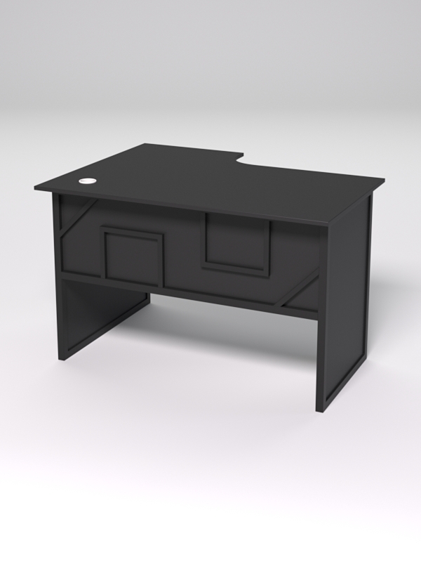 Стол состоит из 4х деталей, которые скрепляются между собой конфирматами и мебельными уголками. Столешница имеет фигурный вырез со стороны работника. Инструкция по сборке не требуется.