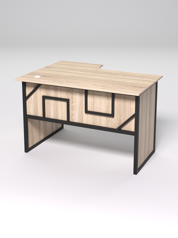 Стол состоит из 4х деталей, которые скрепляются между собой конфирматами и мебельными уголками. Столешница имеет фигурный вырез со стороны работника. Инструкция по сборке не требуется.