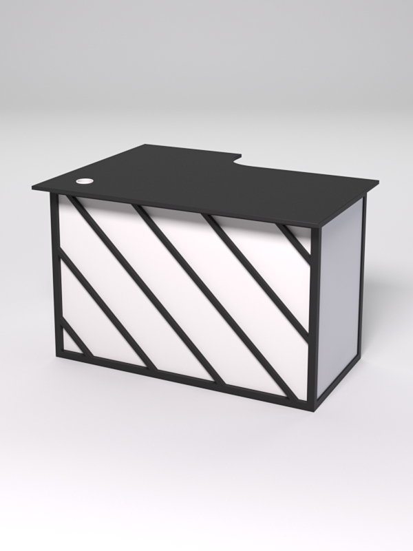 Стол состоит из 4х деталей, которые скрепляются между собой конфирматами и мебельными уголками. Столешница имеет фигурный вырез со стороны работника. Инструкция по сборке не требуется.