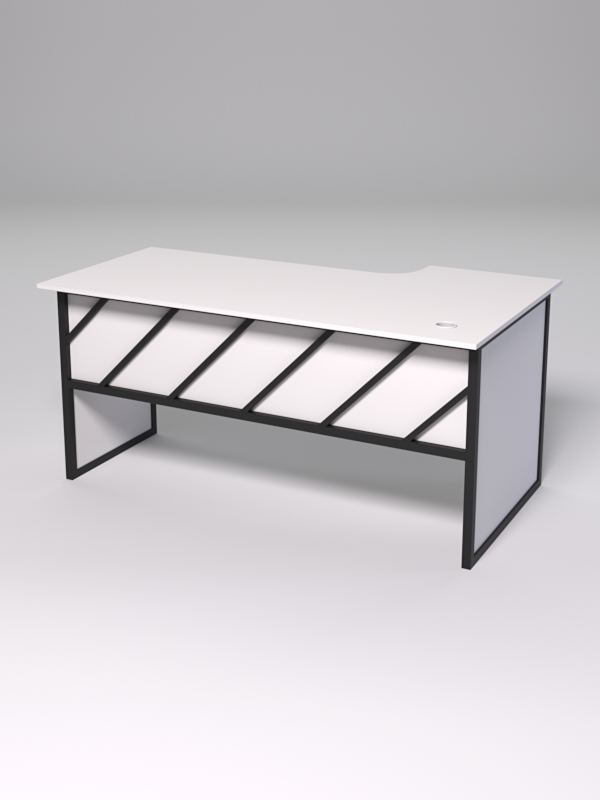 Стол состоит из 4х деталей, которые скрепляются между собой конфирматами и мебельными уголками. Столешница имеет фигурный вырез со стороны работника. Инструкция по сборке не требуется.