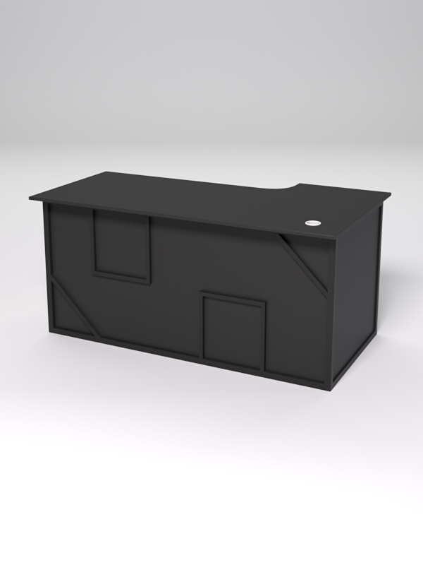 Стол состоит из 4х деталей, которые скрепляются между собой конфирматами и мебельными уголками. Столешница имеет фигурный вырез со стороны работника. Инструкция по сборке не требуется.