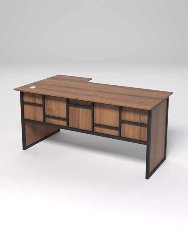 Стол эргономичный офисный СЭ-18 (правосторонний) "СТРОНГ" в стиле ЛОФТ декор №3, Орех