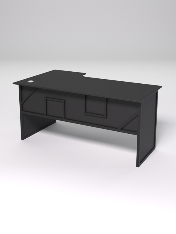 Стол состоит из 4х деталей, которые скрепляются между собой конфирматами и мебельными уголками. Столешница имеет фигурный вырез со стороны работника. Инструкция по сборке не требуется.