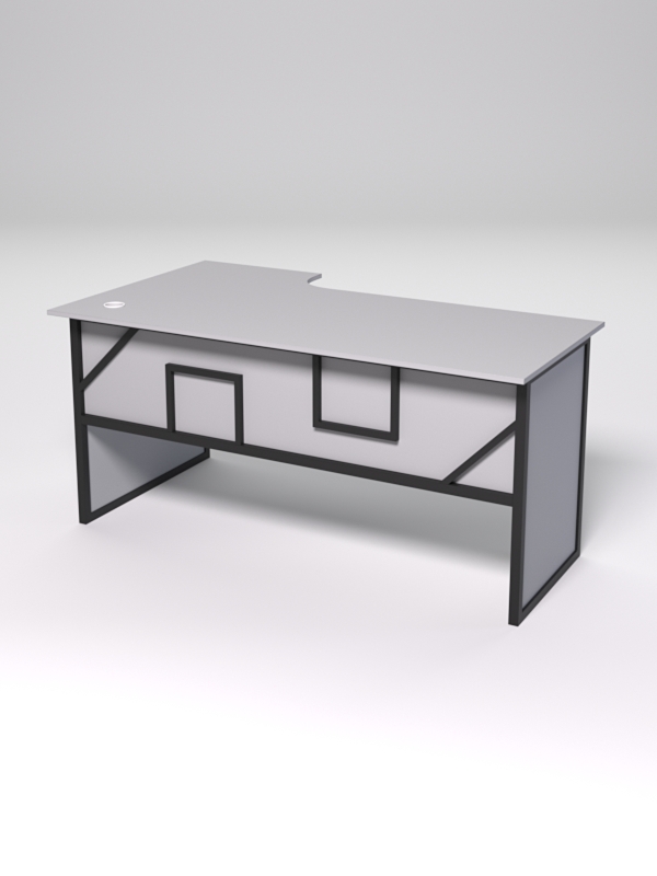 Стол состоит из 4х деталей, которые скрепляются между собой конфирматами и мебельными уголками. Столешница имеет фигурный вырез со стороны работника. Инструкция по сборке не требуется.
