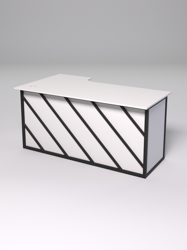 Стол состоит из 4х деталей, которые скрепляются между собой конфирматами и мебельными уголками. Столешница имеет фигурный вырез со стороны работника. Инструкция по сборке не требуется.
