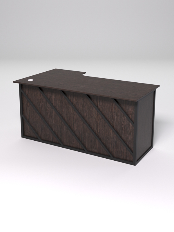 Стол состоит из 4х деталей, которые скрепляются между собой конфирматами и мебельными уголками. Столешница имеет фигурный вырез со стороны работника. Инструкция по сборке не требуется.