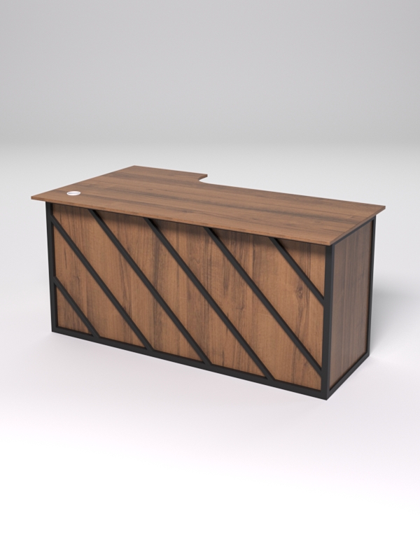 Стол состоит из 4х деталей, которые скрепляются между собой конфирматами и мебельными уголками. Столешница имеет фигурный вырез со стороны работника. Инструкция по сборке не требуется.
