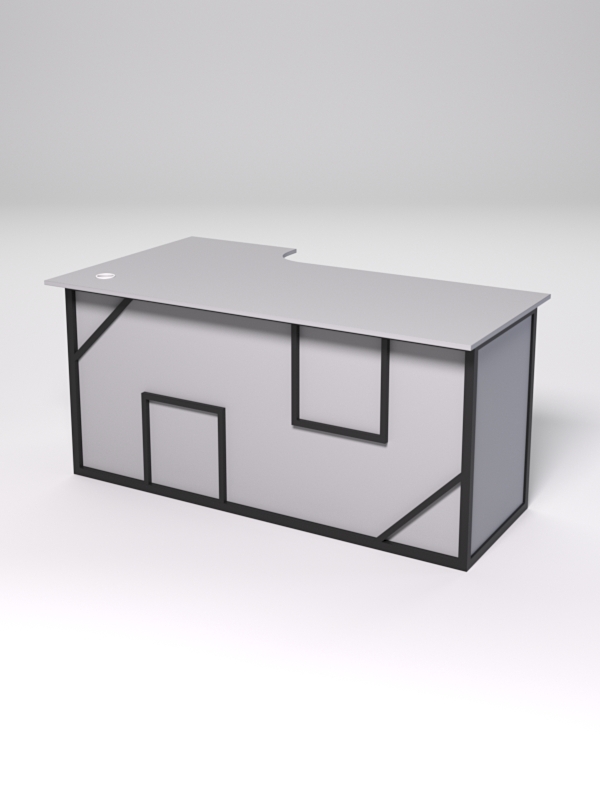 Стол состоит из 4х деталей, которые скрепляются между собой конфирматами и мебельными уголками. Столешница имеет фигурный вырез со стороны работника. Инструкция по сборке не требуется.