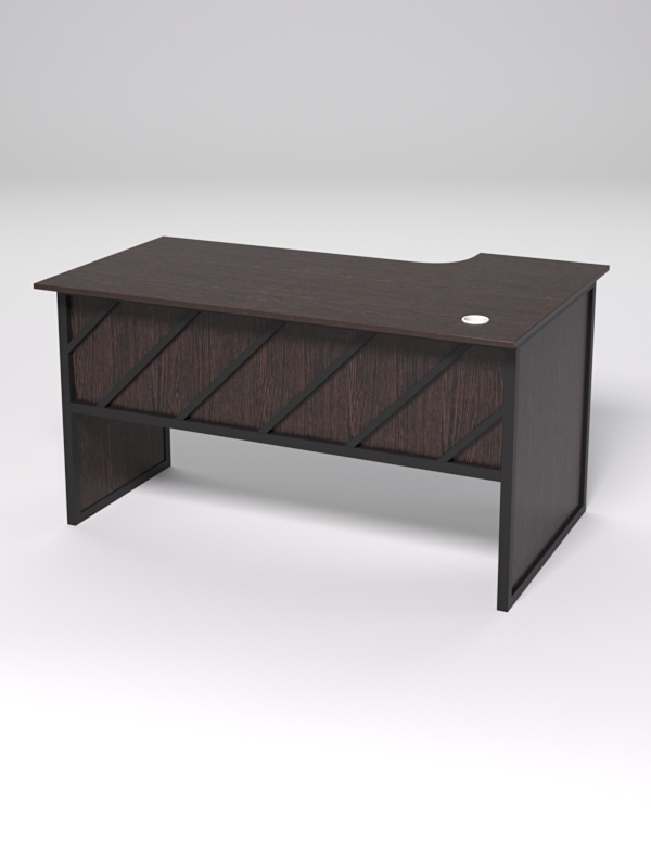 Стол состоит из 4х деталей, которые скрепляются между собой конфирматами и мебельными уголками. Столешница имеет фигурный вырез со стороны работника. Инструкция по сборке не требуется.