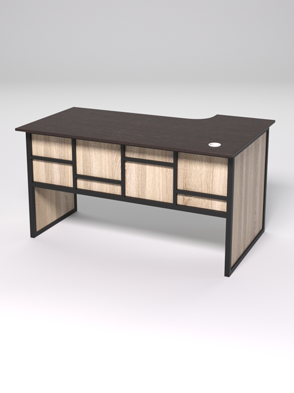 Стол эргономичный офисный СЭ-19 (левосторонний) "СТРОНГ" в стиле ЛОФТ декор №3, Дуб Венге и Дуб Сонома