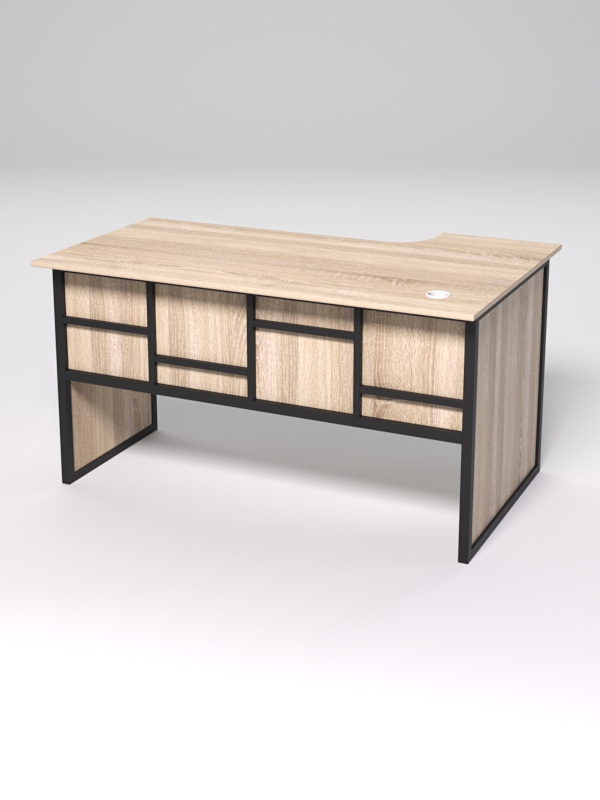 Стол состоит из 4х деталей, которые скрепляются между собой конфирматами и мебельными уголками. Столешница имеет фигурный вырез со стороны работника. Инструкция по сборке не требуется.