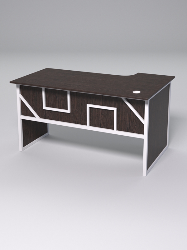 Стол состоит из 4х деталей, которые скрепляются между собой конфирматами и мебельными уголками. Столешница имеет фигурный вырез со стороны работника. Инструкция по сборке не требуется.