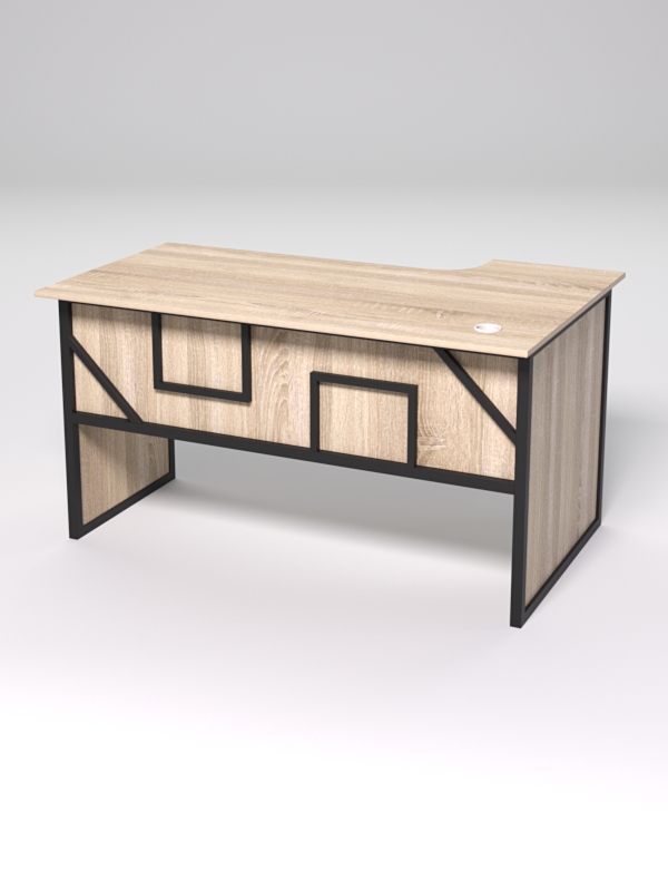 Стол состоит из 4х деталей, которые скрепляются между собой конфирматами и мебельными уголками. Столешница имеет фигурный вырез со стороны работника. Инструкция по сборке не требуется.