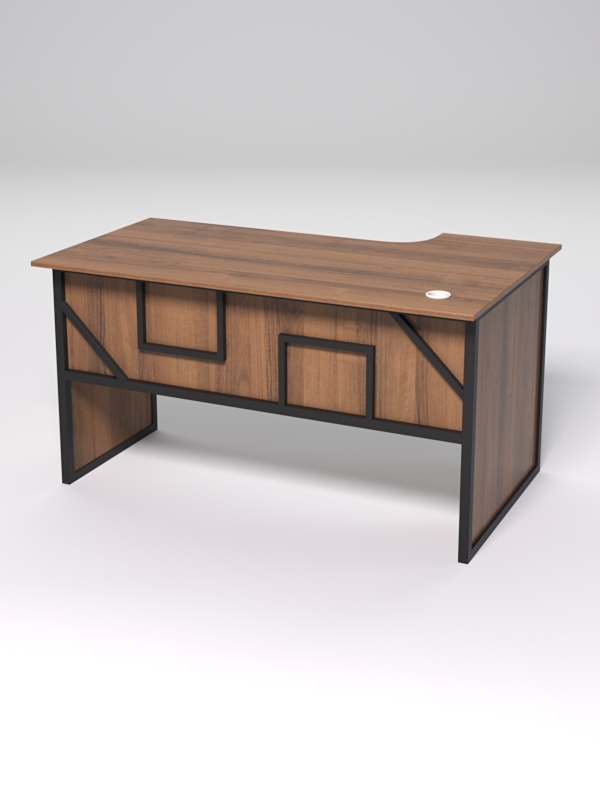 Стол состоит из 4х деталей, которые скрепляются между собой конфирматами и мебельными уголками. Столешница имеет фигурный вырез со стороны работника. Инструкция по сборке не требуется.